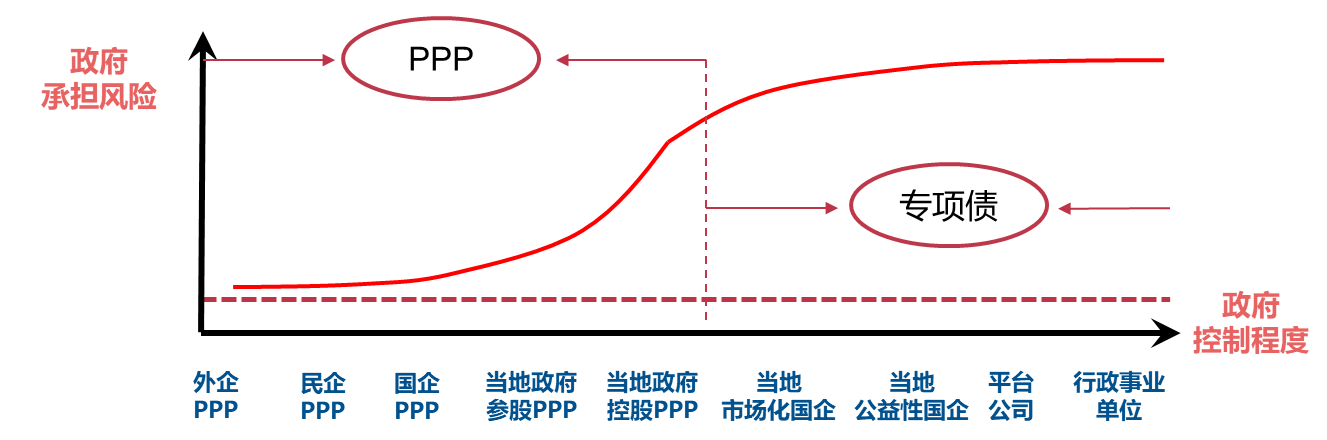 圖2 目前專項債和PPP與基礎(chǔ)設(shè)施投資主體之間的對應(yīng)關(guān)系