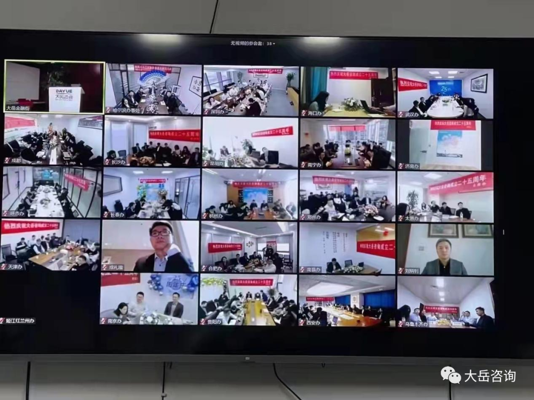 2021年11月5日,大岳咨詢25周年司慶活動(dòng)在北京總部和全國(guó)27個(gè)分支機(jī)構(gòu)同步舉行。受疫情影響,公司為確保全體同事人身安全,采用線上“云司慶”的形式舉辦本次活動(dòng)。
