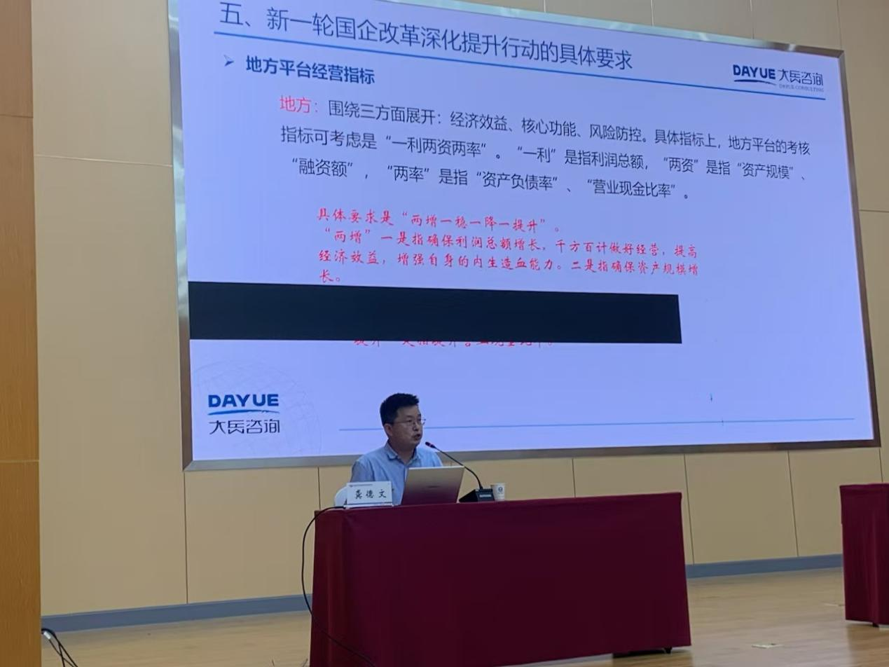 2024年8月—10月,應(yīng)湖北地方國有企業(yè)邀請,大岳咨詢首席行業(yè)專家龔德文總監(jiān)攜團(tuán)隊先后前往黃岡市羅田縣、黃梅縣等地,分別為湖北聯(lián)投集團(tuán)有限公司投融資部、湖北羅田國有資本投資運營集團(tuán)有限公司、湖北聯(lián)投鄂東投資有限公司等地方國有企業(yè)主要負(fù)責(zé)人及各部門人員開展了以新時代背景下地方國企的轉(zhuǎn)型升級及投融資模式為主題的專題培訓(xùn)。